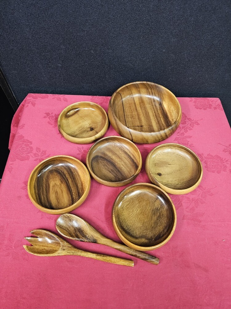 - 木製 サラダボールセット サラダセット 天然木 サイズ約直径大20cm×1 小13cm×5 セット ekt1-164