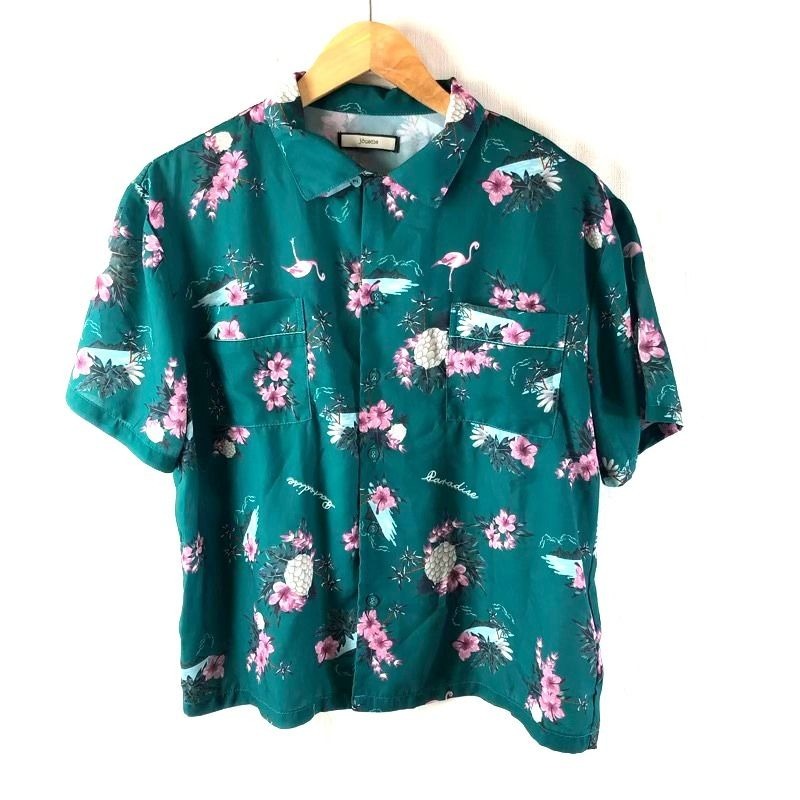 > ジュエティ jouetie シャツ カジュアルシャツ 半袖 柄模様 フラミンゴ サイドポケット 緑 Mサイズ 2025080800171