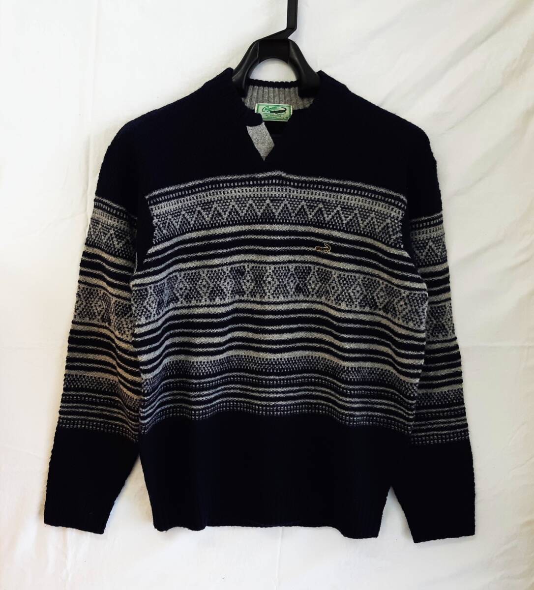 - 【菊水-361】E クロコダイル CROCODILE/ネイティブ柄 キーネック ニットセーター/メンズ/L/ネイビー系/秋冬(SK)