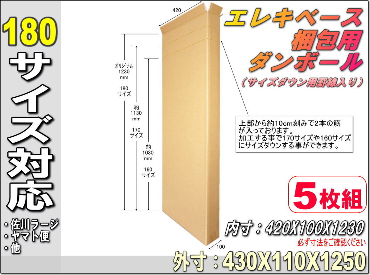 - □宅配180ダンボールエレキベースエレキギター等梱包箱外寸:430×110×1250サイズダウン罫線2本入 5枚