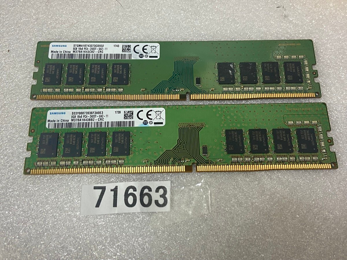 > SAMSUNG PC4-2400T 8GB 2枚 16GB DDR4 デスクトップ用メモリ ECC無し 288ピン PC4-19200 ddr4 desktop ram