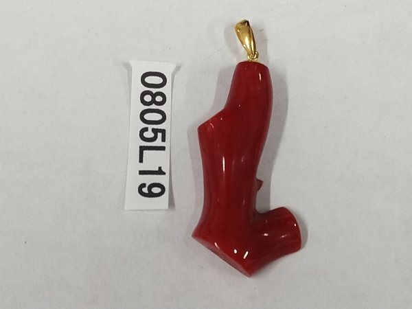 - 0805L19 本珊瑚 サンゴ ペンダント 刻印K18 約6.5g