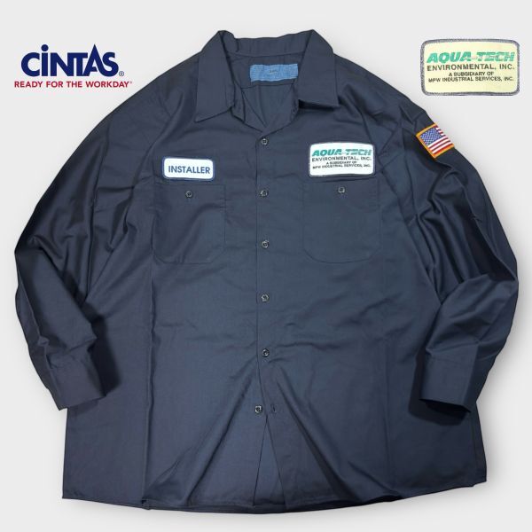 - ★美品★USA星条旗★AQUA-TEACロゴワッペン★CINTAS 長袖ワークシャツ size2XL スナップボタン アメリカ 古着 洗濯 プレス済み 2468