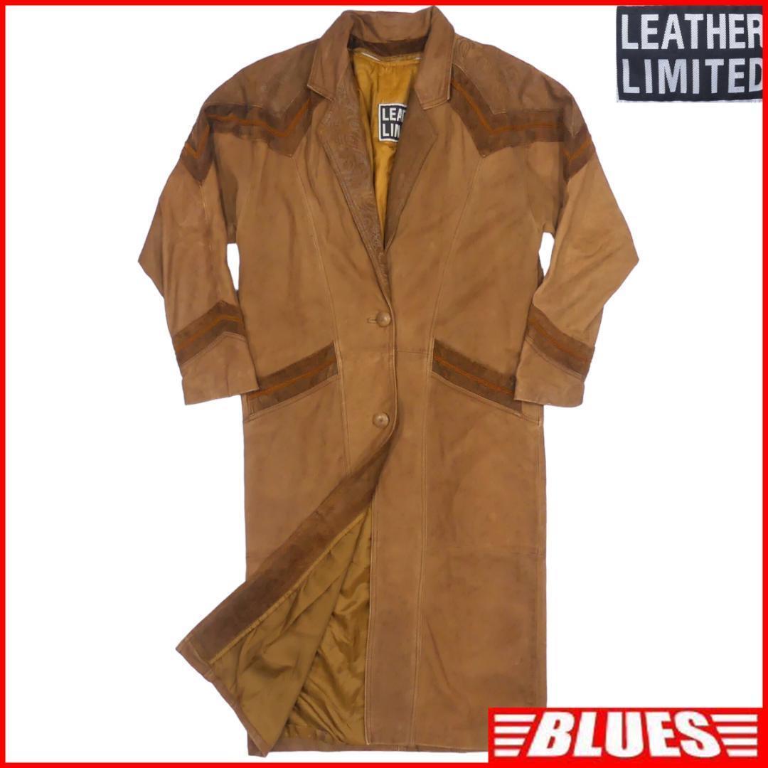 - 即決★LEATHER LIMITED★メンズM レザーチェスターコート レザーリミテッド 茶 スエード ペイズリー柄 ライナー着脱 本革 ロングコート