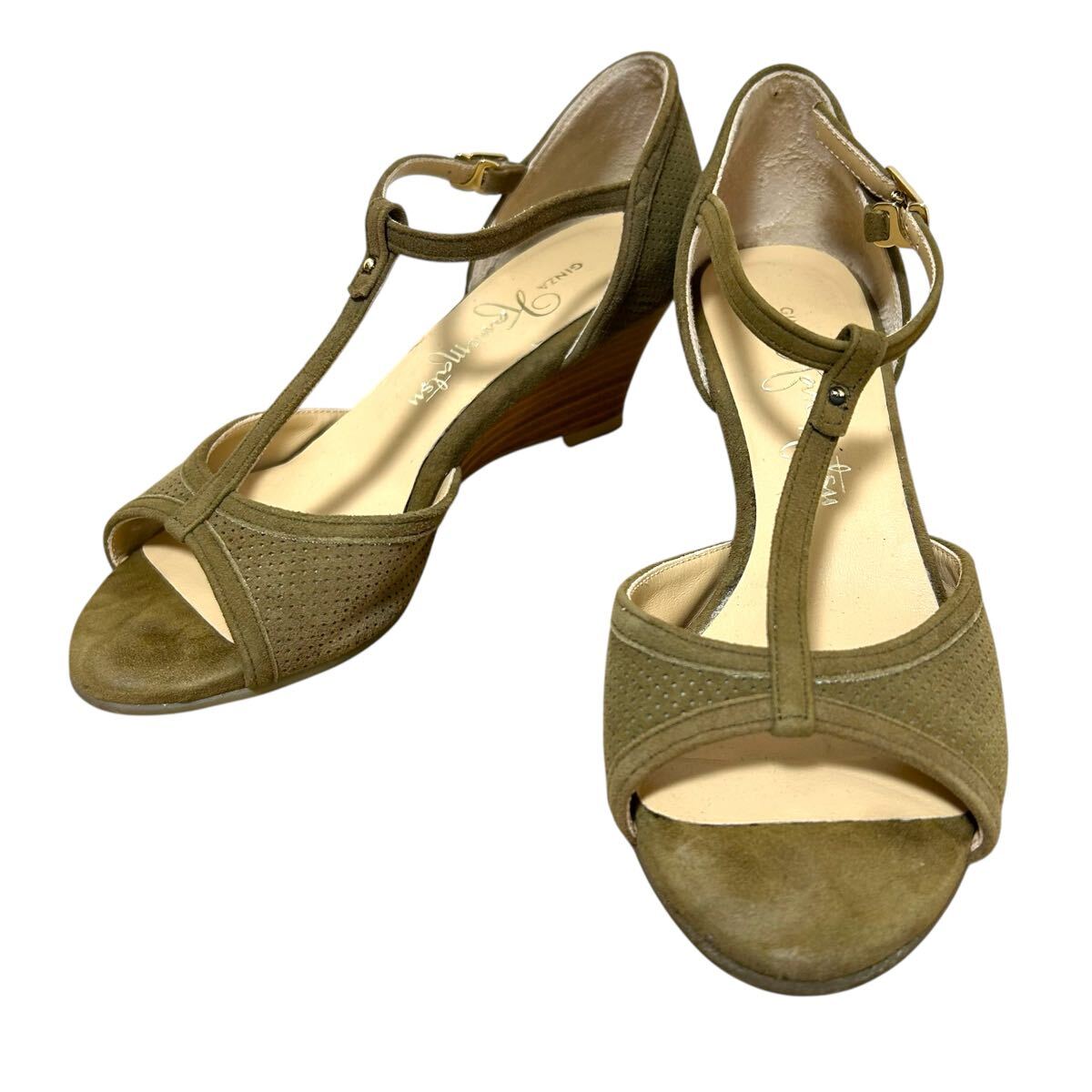 - ※SD 銀座かねまつ ヒールサンダル ウェッジソール カーキ 日本製 21.5cm