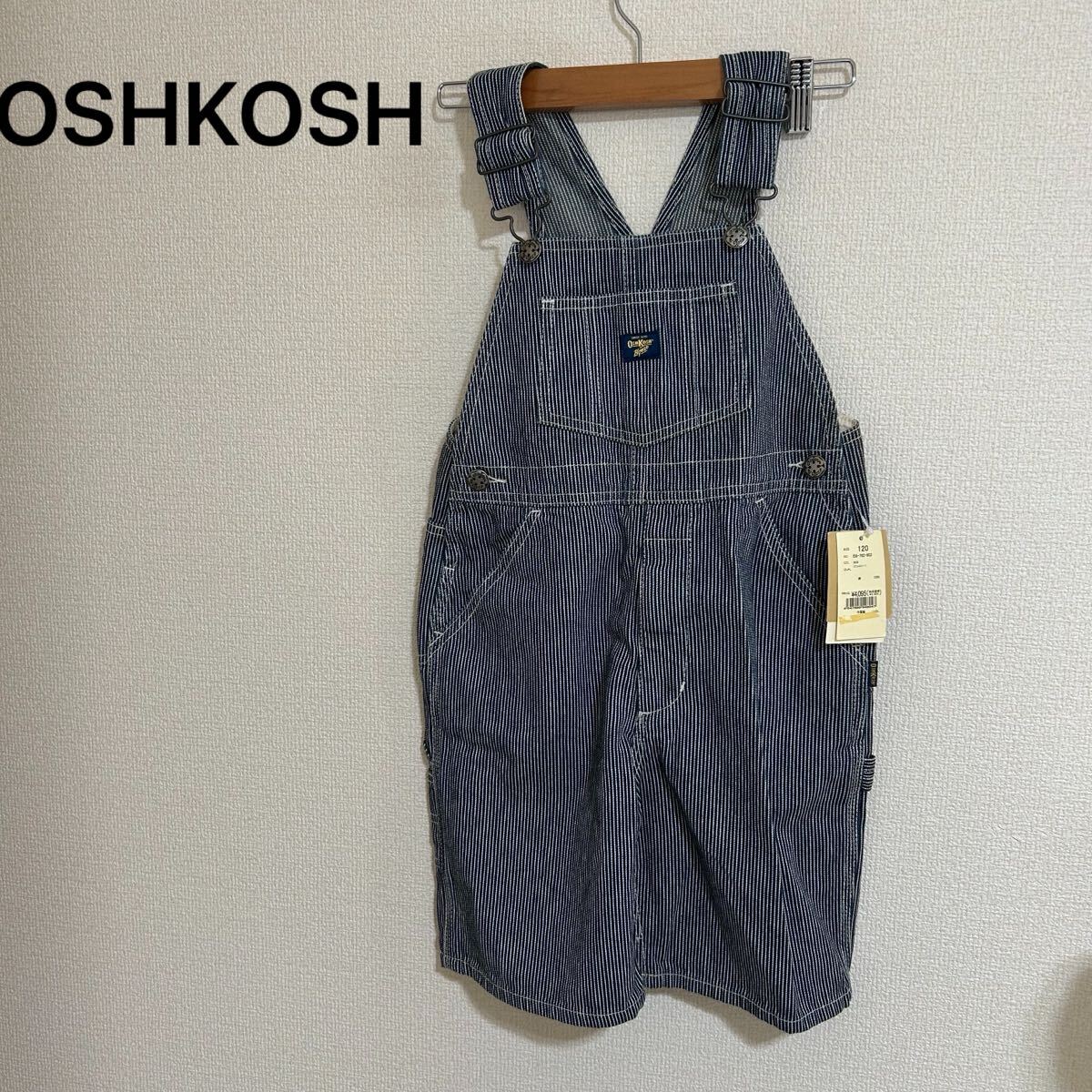 - 新品タグ付き OSHKOSH オシュコシュ オールインワン サロペット ヒッコリー ストライプ デニム ブルー 紺色 120サイズ カジュアル