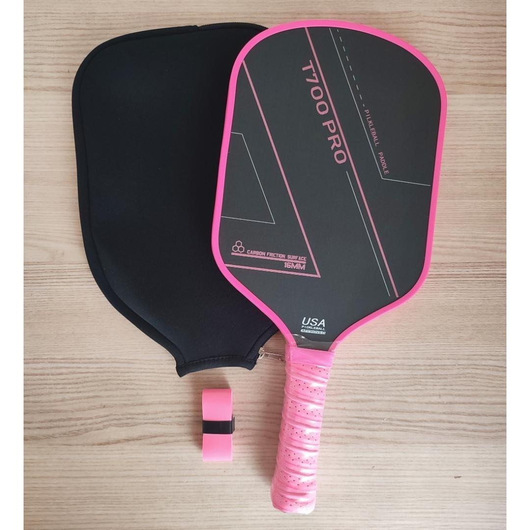 - ピックルボール パドル T700生カーボンファイバー ピンク 16mm カバー