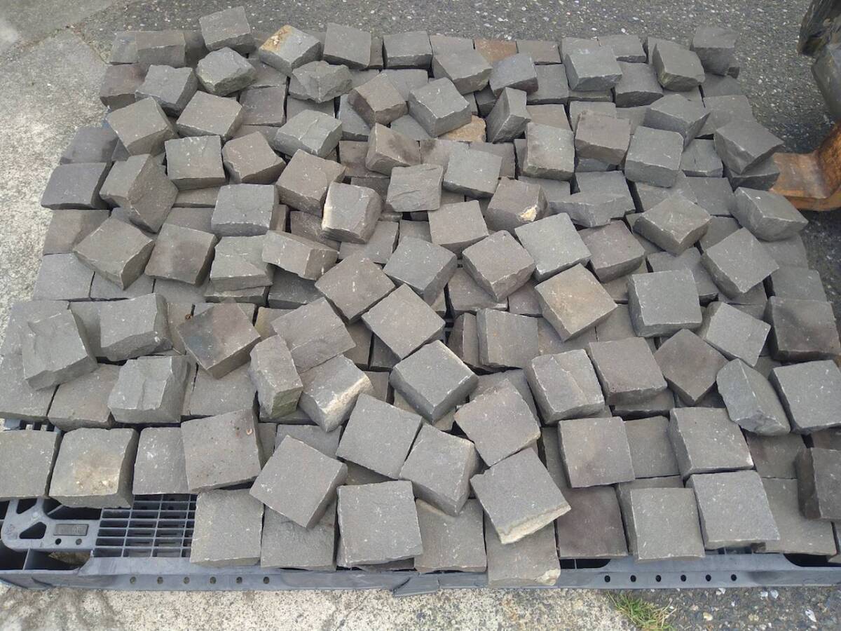 - 《お引き取り限定》ピンコロ石 半丁 割肌 天然石 バサルト 玄武岩 90×90×45 10個●庭・花壇・DIY・石畳・ガーデニング●最安