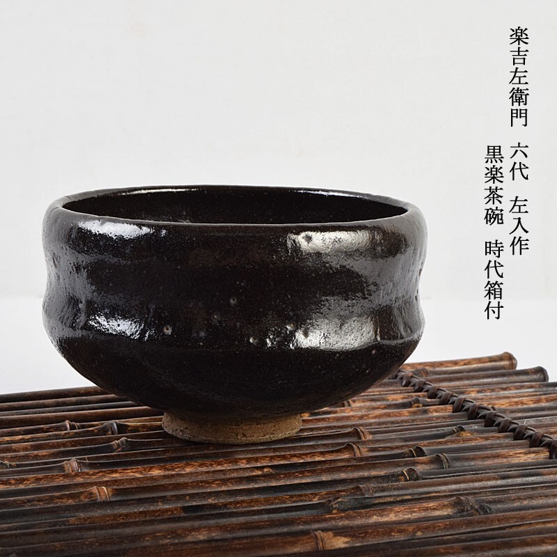 - 茶道具 楽吉左衛門 六代 左入作 黒楽茶碗 時代箱付 VKRB