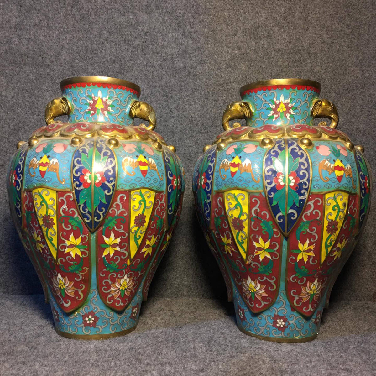 - 8+DS3867「東洋美術」人間国宝 中国骨董 銅製品【七宝銅地七宝花瓶】 旧物 珍品 精美 收藏品 中国の古い美術