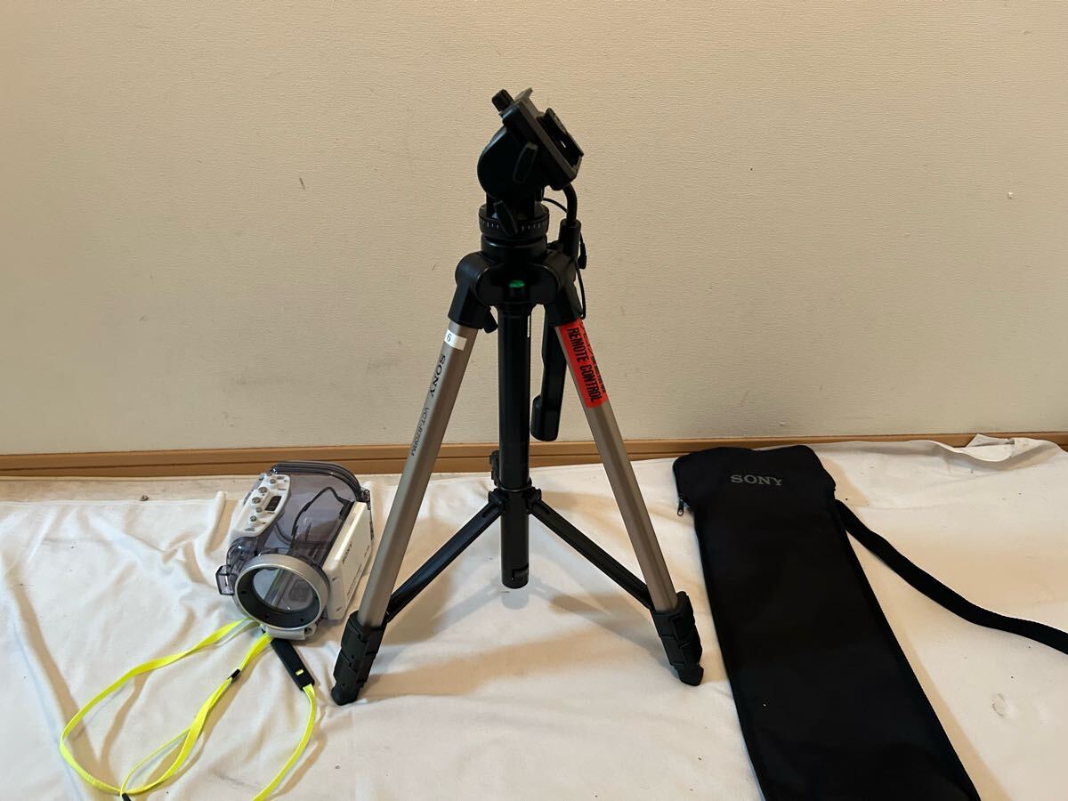 > SONY リモコン付き三脚 カメラスタンド 3段調節 VCT-870RM デジタルビデオカメラ Lanc端子 Sports pack SPK-HCE 防水ケース 現状品