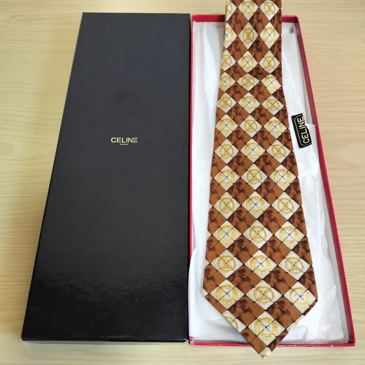 - CELINE(セリーヌ)茶色ゴールドコイン四角柄ネクタイ