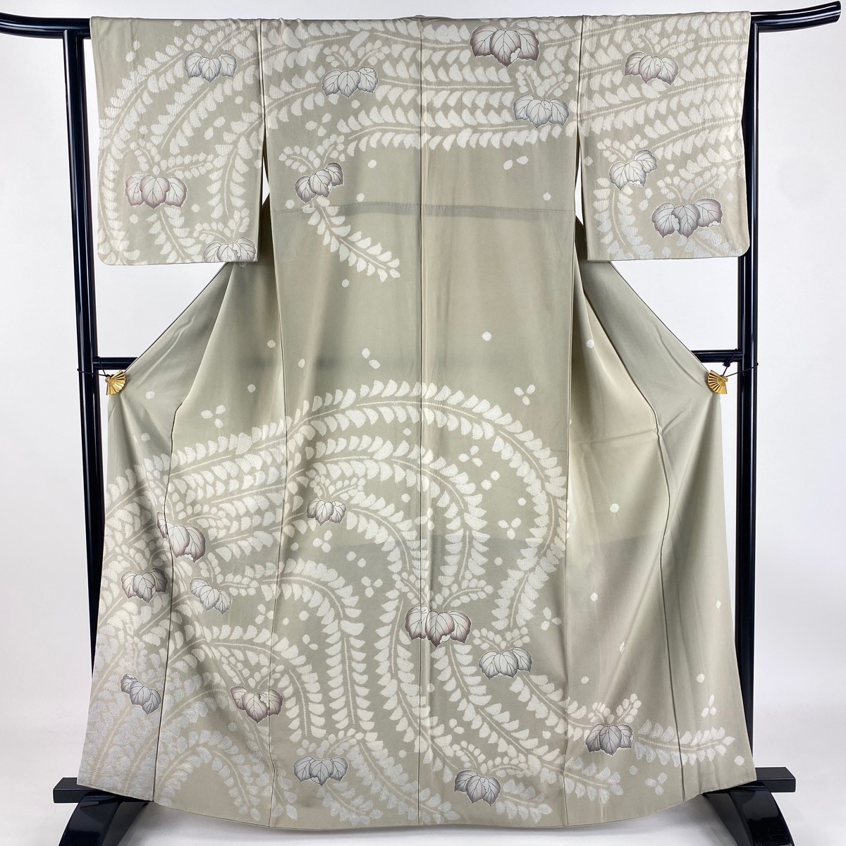 - 訪問着 身丈163.5cm 裄丈63cm S 袷 葉柄 絞り ベージュ 正絹 名品 【中古】
