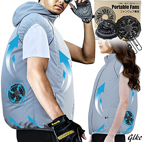 - 【屋外作業やアウトドアなど幅広いシーンで活用できる】 フード付き空調服 夏用作業着 3XL 熱中症対策 アウトドア グレー・グリーン