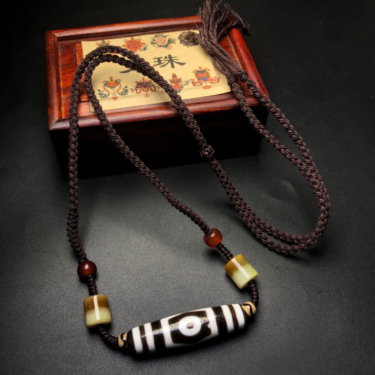 - 「時代物 藏區 瑪瑙彫り 三眼天珠 編製項鏈」極細工 裝身具 賞物 中国古美術 旧蔵出