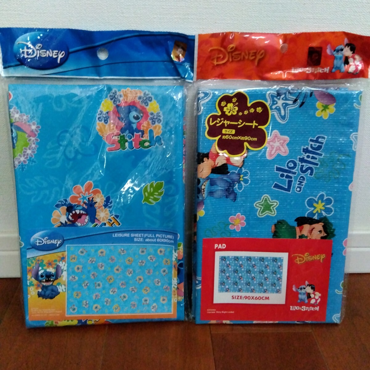 > ☆ディズニー リロ&スティッチ レジャーシート 1人用 約60×90㎝ 柄違い 2点 ピクニック 遠足 DISNEY ブルー系 ☆希少 即決