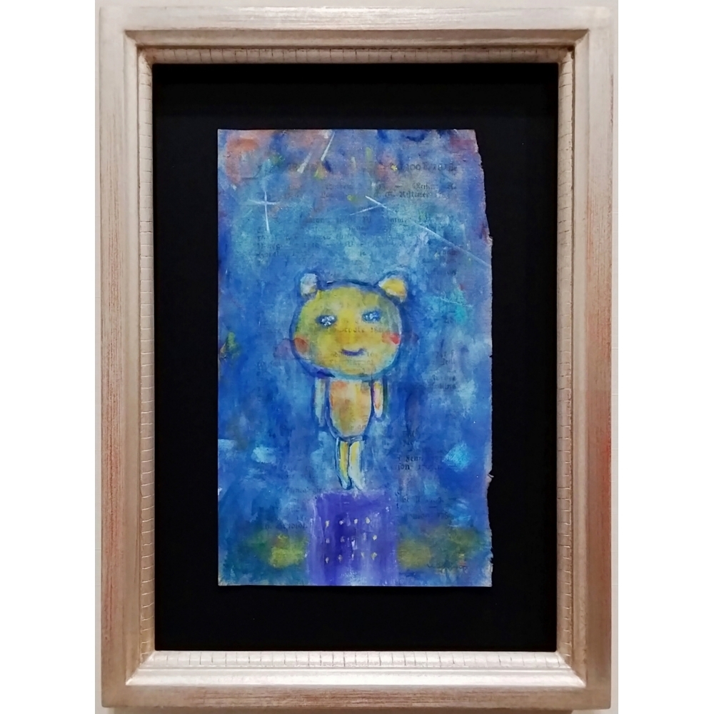 - 内野隆文 夜のくま 絵画 アンティークペーパー アクリル画 テディベア 現代美術 アート作品 額付 真作