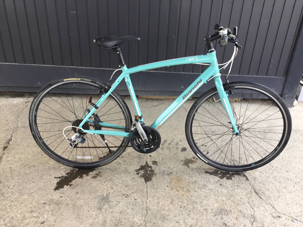 > △ v A-80岐阜発/ Bianchi/ C sport1/ クロスバイク/ 3×8段変速/ 700×28c/自転車/走行確認/Fギヤ変速不可/現状品/ 管u/ R7.8/25 △