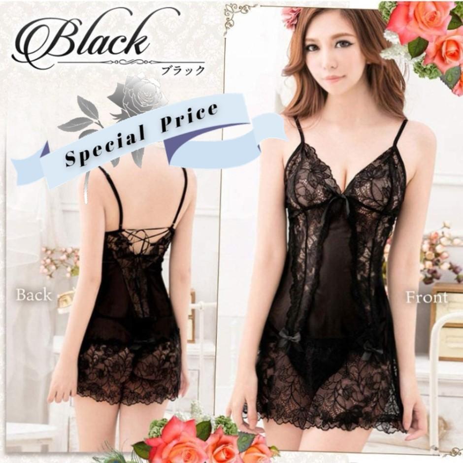 - 【SALE】可愛くてセクシー ナイトウェア ベビードール&Tバック付き ブラック