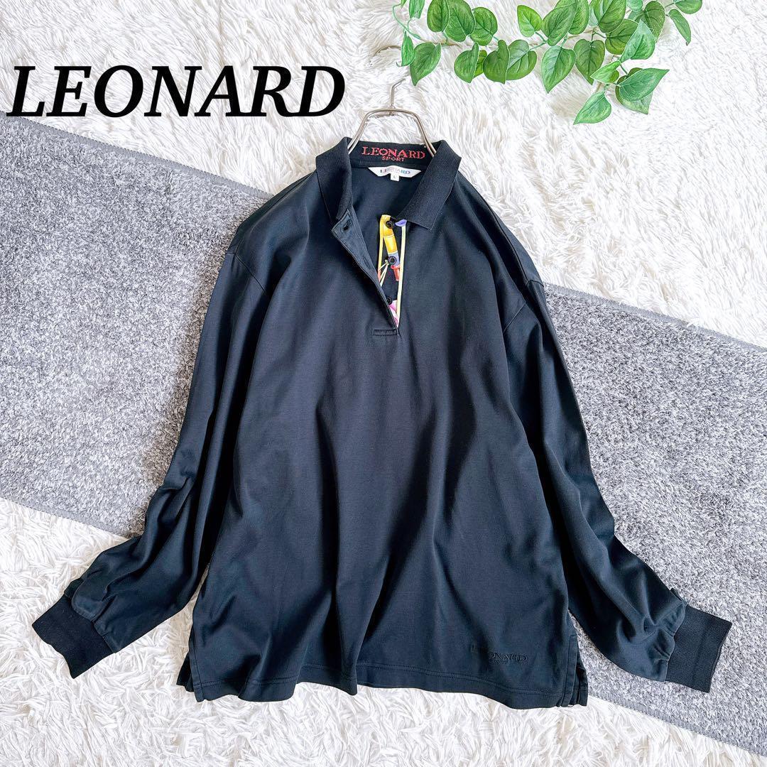 - LEONARD レオナール 長袖ポロシャツ ワンポイントロゴ ブラック 刺繍 花柄 L トップス レディース