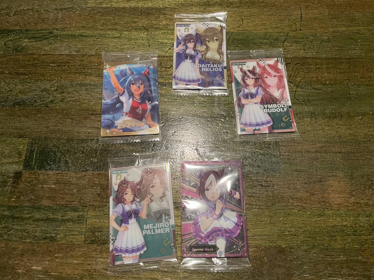 > ウマ娘 プリティーダービー ツインウエハース ブロマイドカード等5種セット スペシャルウィーク ヒシアマゾン他 【内袋未開封】