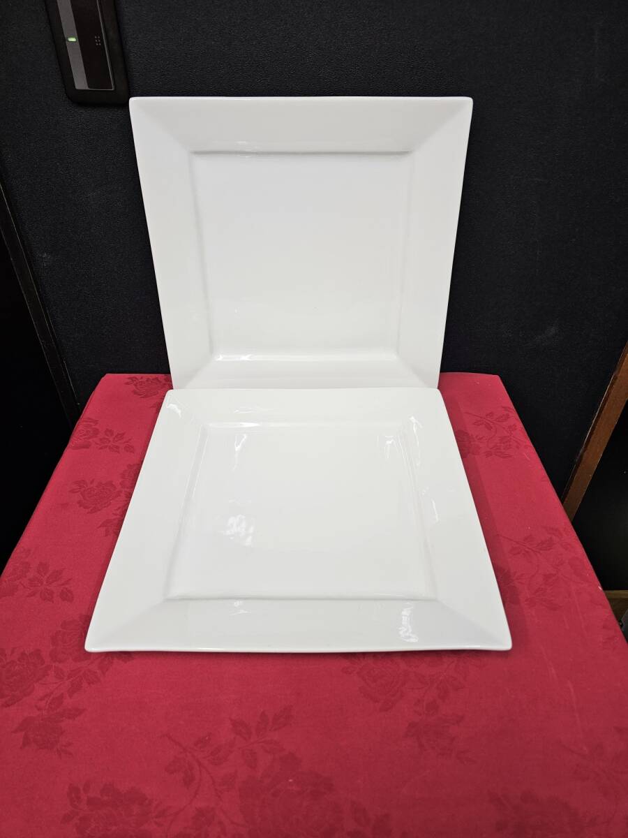 - 陶器 平皿 四角 プレート お皿 大きいサイズ サイズ約38×38cm高さ3cm 2枚セット ekt1-165