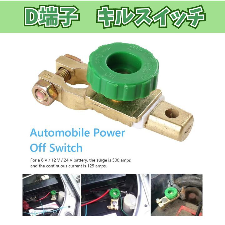 > D端子バッテリーキルスイッチ 車両用カットターミナル 簡単ON/OFF操作 錆び防止 バッテリー上がり防止や盗難防止対策に最適 6V/12V/24V対応