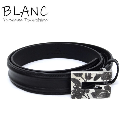 - グッチ Gスクエア フラワーバックル ベルト レザー #86 ブラック シルバー 709979 GUCCI 横浜BLANC