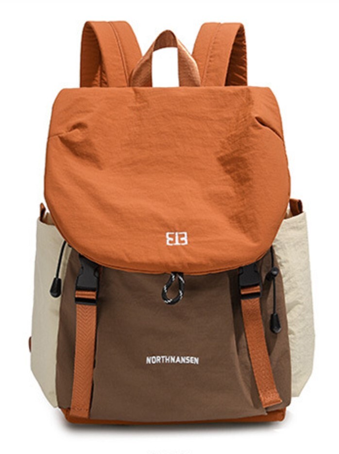 - 【超軽量 リュックサック オレンジ×ブラウン】男女兼用 ユニセックス 撥水性 オックスフォード生地 ポケット多数 タブレットポケット