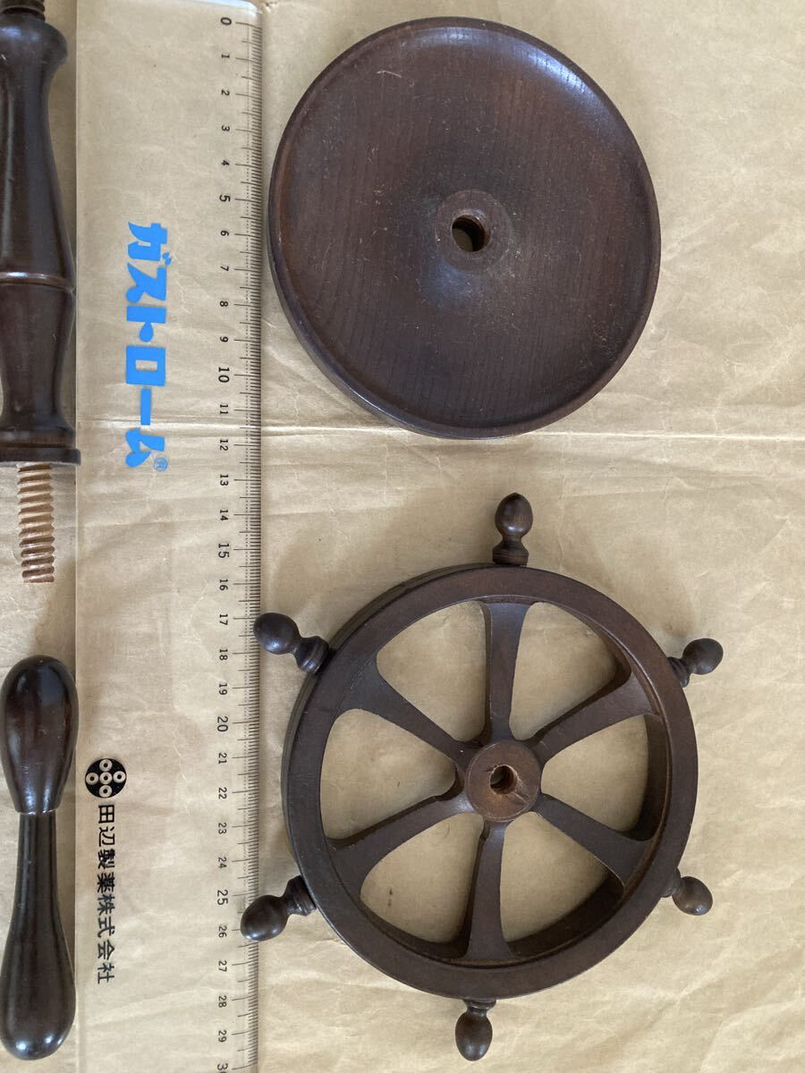 - 中古品 長期保管品 置物 ネックレス掛? 舵輪 ハンドル 船舵 インテリア 木製 マリンテイスト アンティーク 送料1040円 船舶 ハンドル