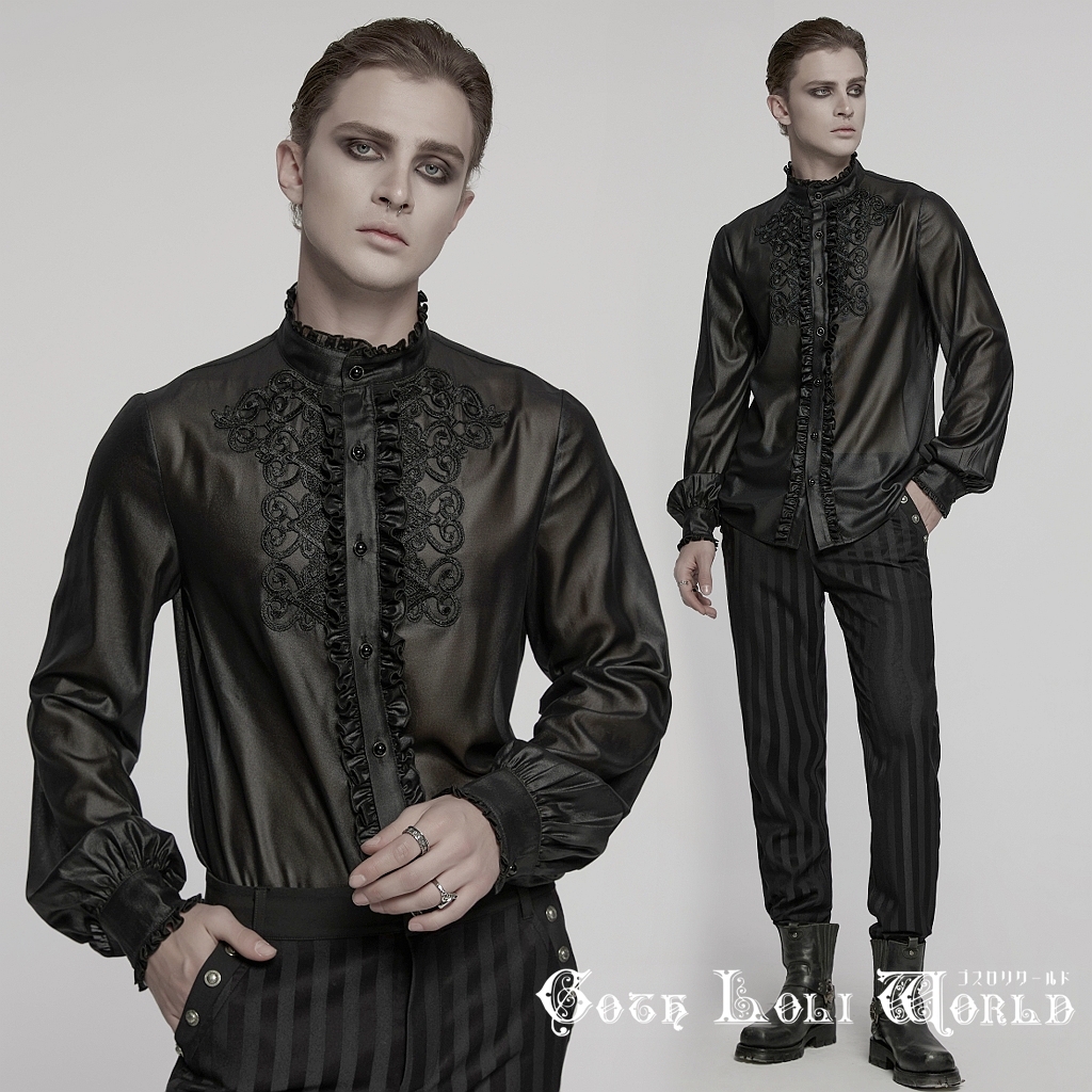 > 即納 WY-1786CCM-BK-M ゴシック ファション スタンドカラー 刺 ブラウス シャツ ブラック 黒色 紳士 ジェントルマン 貴族 男爵
