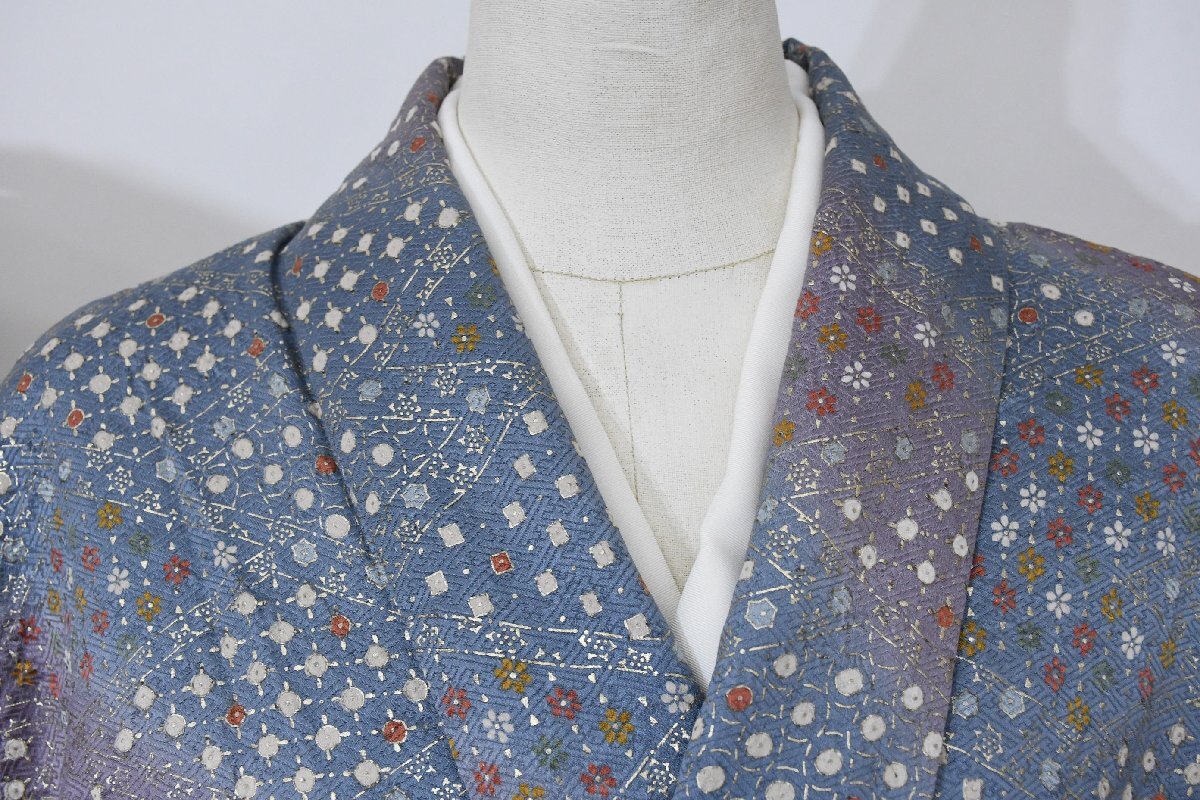 > 小紋 着物 袷 菱文繋ぎ 花 身丈150.5cm 裄丈63cm ★ kb-7014 桜庭呉服店