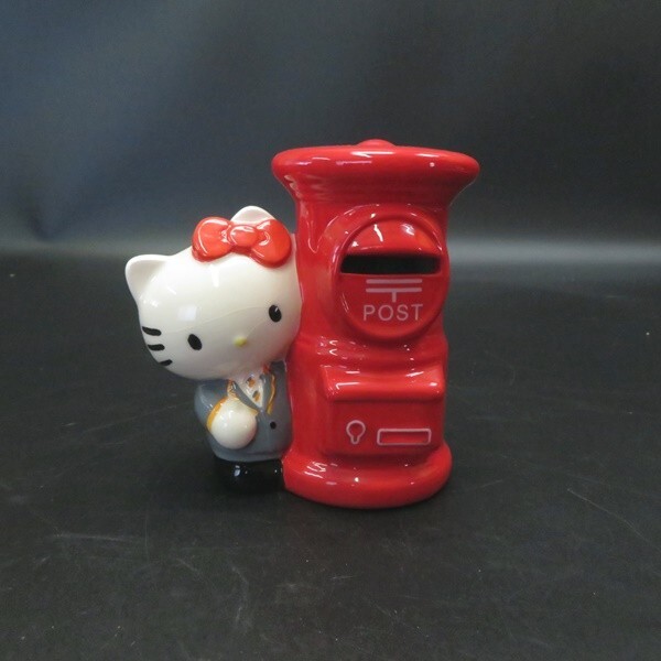 - U13 キティちゃん便ポスト型貯金箱 約10㎝ 丸ポスト 郵便局制服 1976年 サンリオ 昭和レトロ 陶器製 貴重 当時物