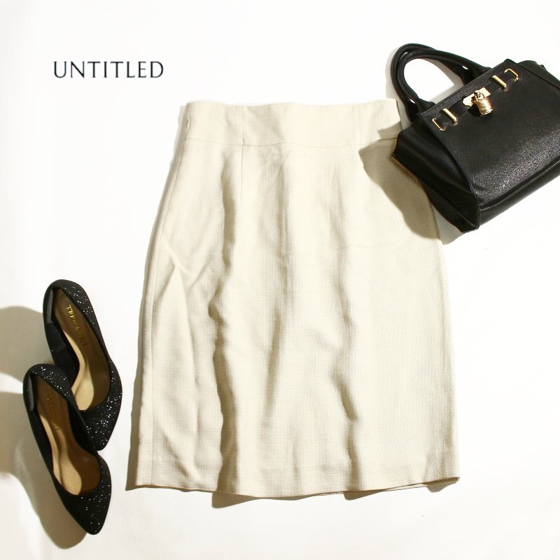 - 美品 アンタイトル UNTITLED 株) ワールド 通年 ポリエステル 単色ツイード スーツ タイトスカート 9号 2 ホワイト 白 オフィス フォーマル