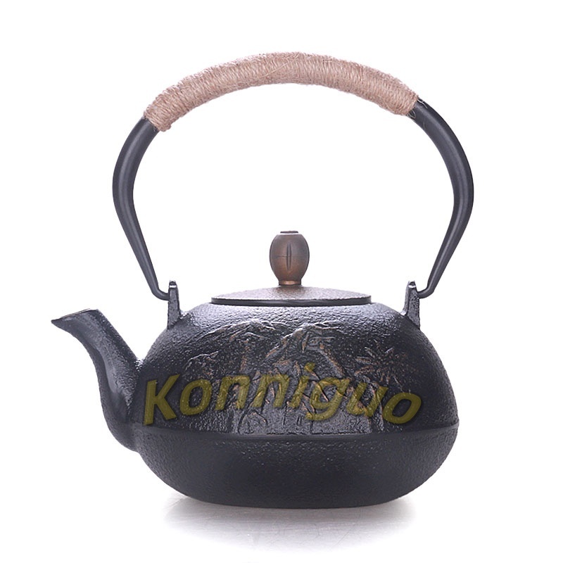 - 復旧竹絵柄 茶壺 提梁壺 煮茶壺 茶道具 職人作り 鉄びん 鉄分補給 鉄瓶 焼かん GY46