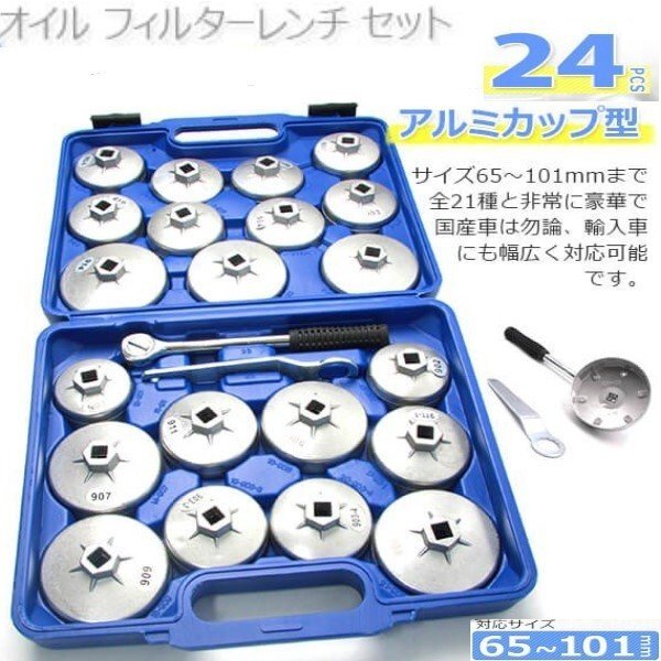 > 【送料無料】★★アルミカップセット 24PC オイルフィルターレンチ 「メガネスパナ」、「ラチェットレンチ」、ハードケースが付属
