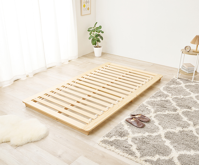 > 余裕のあるサイズ感のステージ型ローベッド シングル~セミダブル 幅120 ナチュラル色 マットレスなし