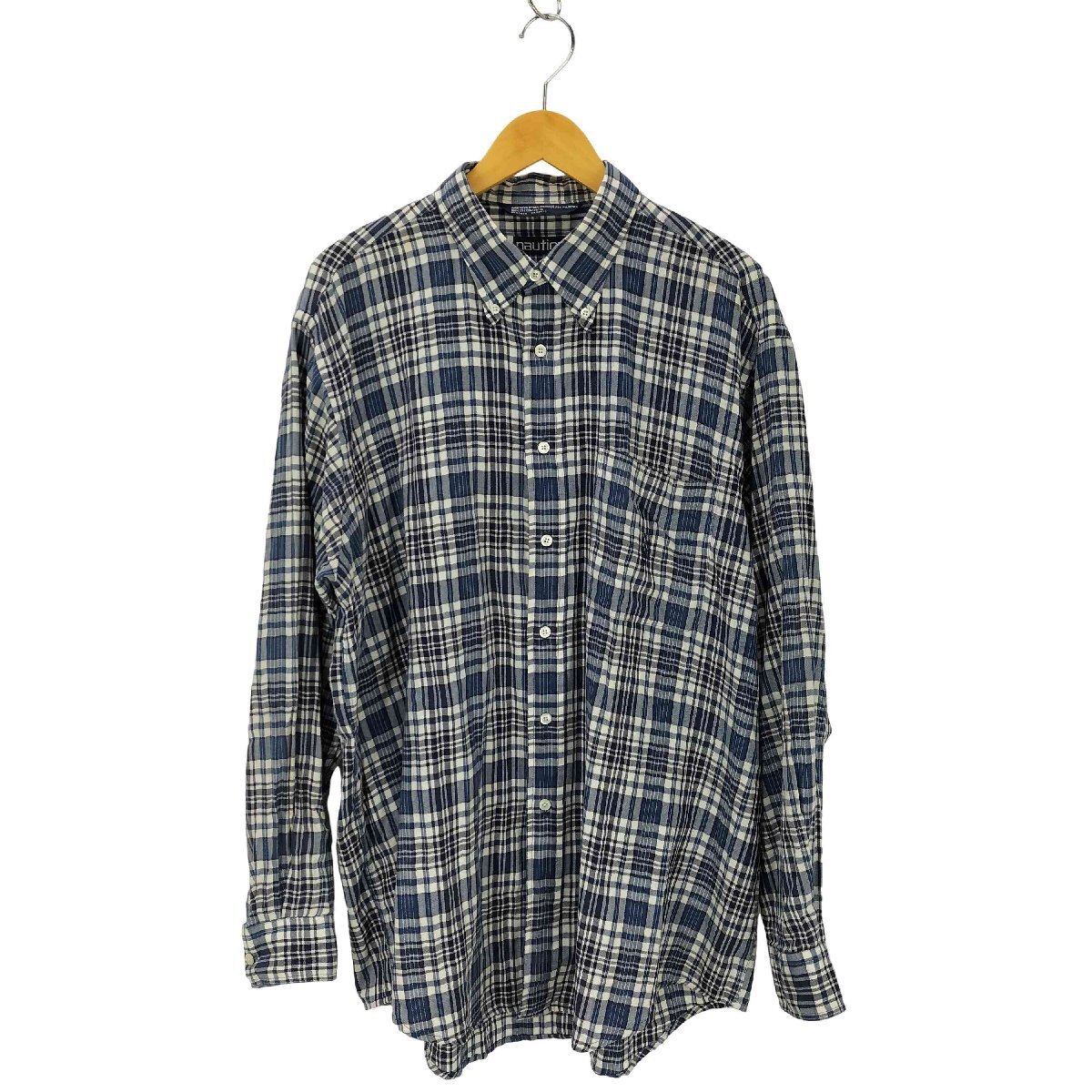 - NAUTICA(ノーティカ) 90S ロゴ刺繍 チェック柄 ボタンダウン 長袖シャツ メンズ JPN:XL 中古 古着 0122