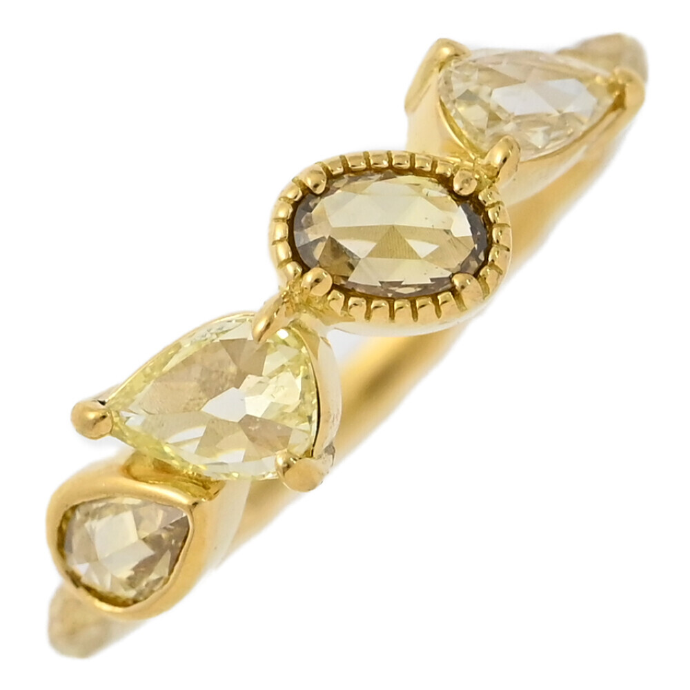 - K18YG/750-2.1g/0.6ct/11号/#51/イエローゴールド 4P・ローズカット ベゼル 4月 誕生石 ダイヤモンドリング・指輪/翌日配送可■588592