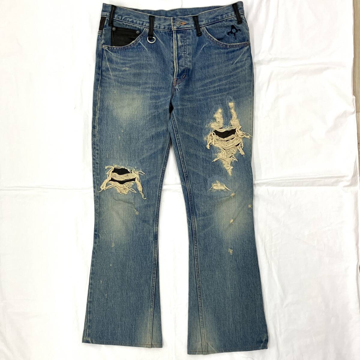 > 中古A バックボーン ザ ベイシス BACK BONE THE BASIS M ジーンズ クラッシュ 鹿革 ブーツカット BB10FW-DP40 メンズ 150902