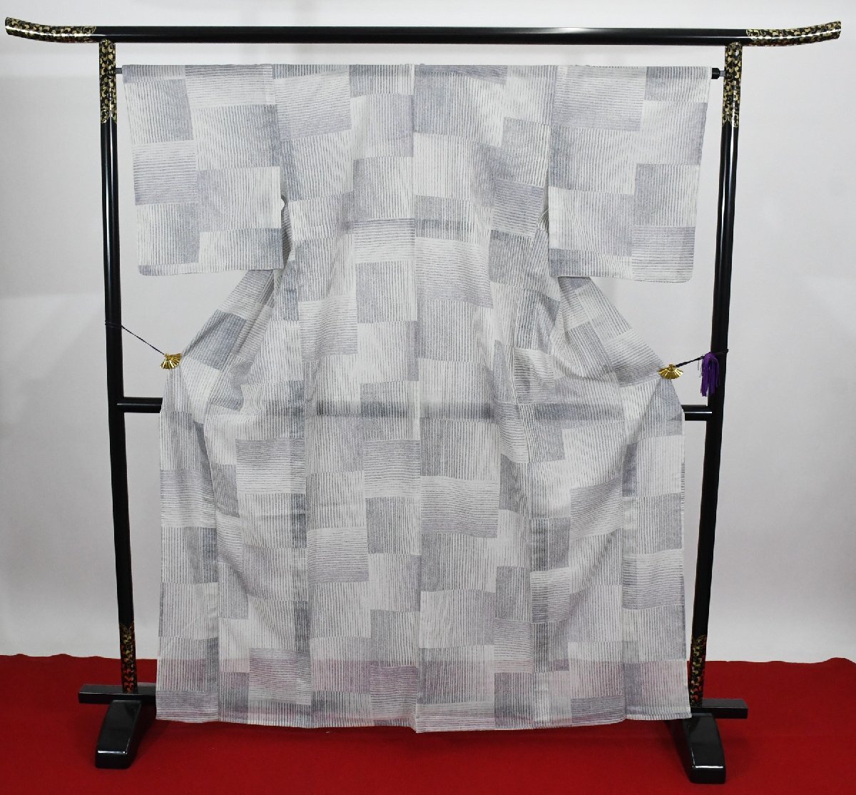 - 小紋 着物 夏着物 薄物 洗える着物 縞 身丈160cm 裄丈66cm ★ kb-7015 桜庭呉服店