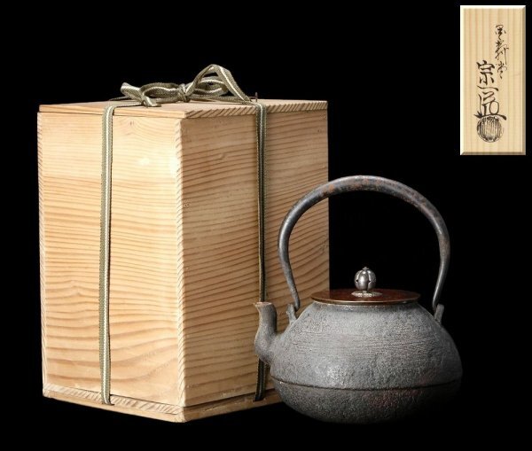 - ■金寿堂 雨宮宗造 刷毛目 銀摘 鉄瓶 共箱■