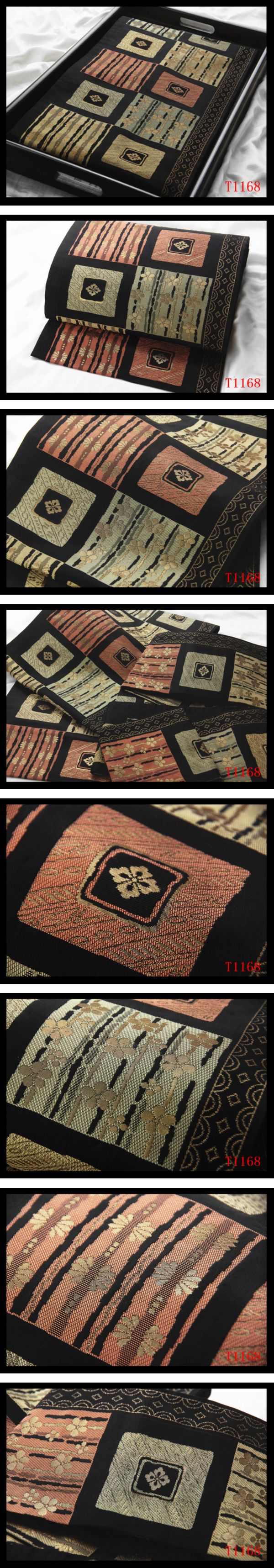 > 蔵【T1168】厳選逸品 市松紋 黒色地 気品豊かに 正絹純金糸高級美術名古屋帯 ◇検簪着物袋帯和装小物帯締め