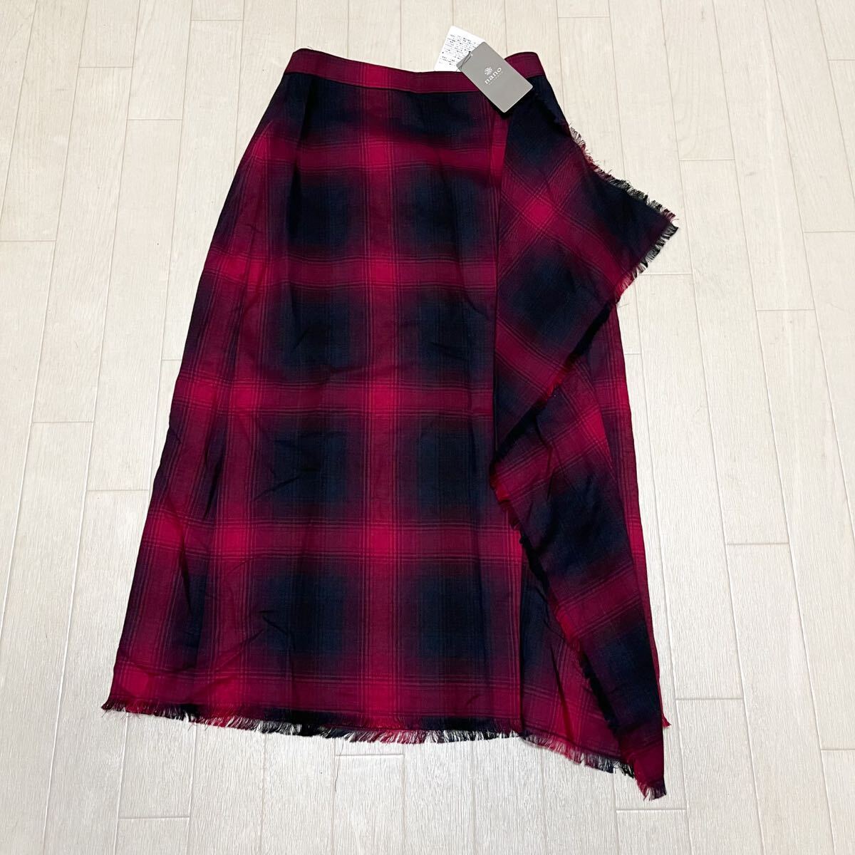 > 和829★① 新品 nano universe ナノユニバース フレアスカート ロングスカート オンブレーチェックスカート 36 レッド ブラック レディース