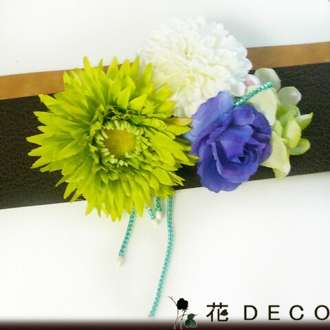 - 髪飾り 花 ガーベラと小花 緑白青 結婚式 振袖 成人式 卒業式 袴 浴衣 アートフラワー(3)