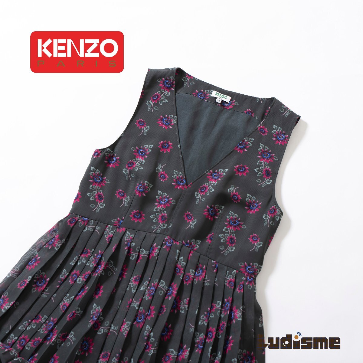 ケンゾー KENZO ノースリーブ ワンピース 花柄 プリーツ ロング丈 34