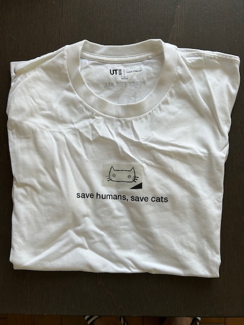> 【村上春樹Tシャツ】 未使用 save humans, save cats ユニクロのTシャツ Lサイズ