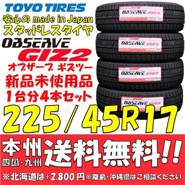 - 225/45R17 91Q トーヨータイヤ 日本製スタッドレスタイヤ オブザーブGIZ2 新品4本セット 即決価格◎送料無料 ショップ 個人宅OK 正規品
