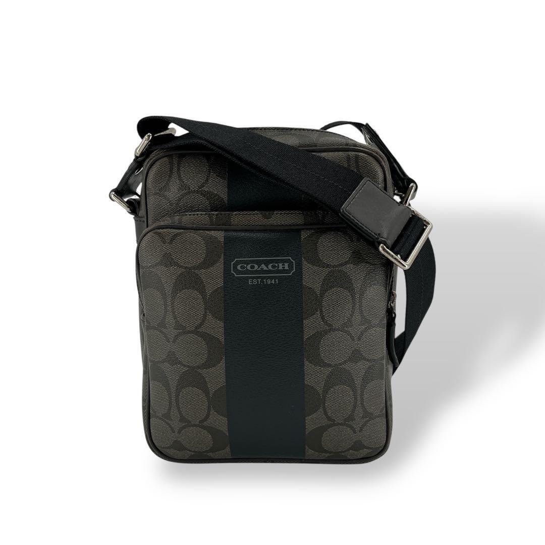 > コーチ COACH ショルダーバッグ カメラバッグ ヘリテージ ストライプ シグネチャー ロゴ刻印 シルバー金具 総柄 ユニセックス
