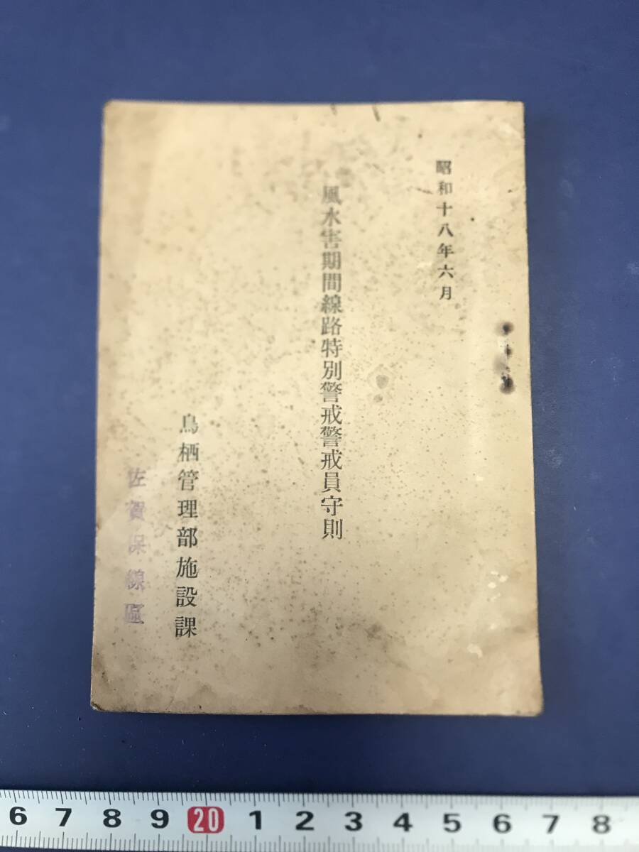 - 風水害期間線路特別警戒警戒員守則 昭和18年 鳥栖管理部施設課 佐賀保線区